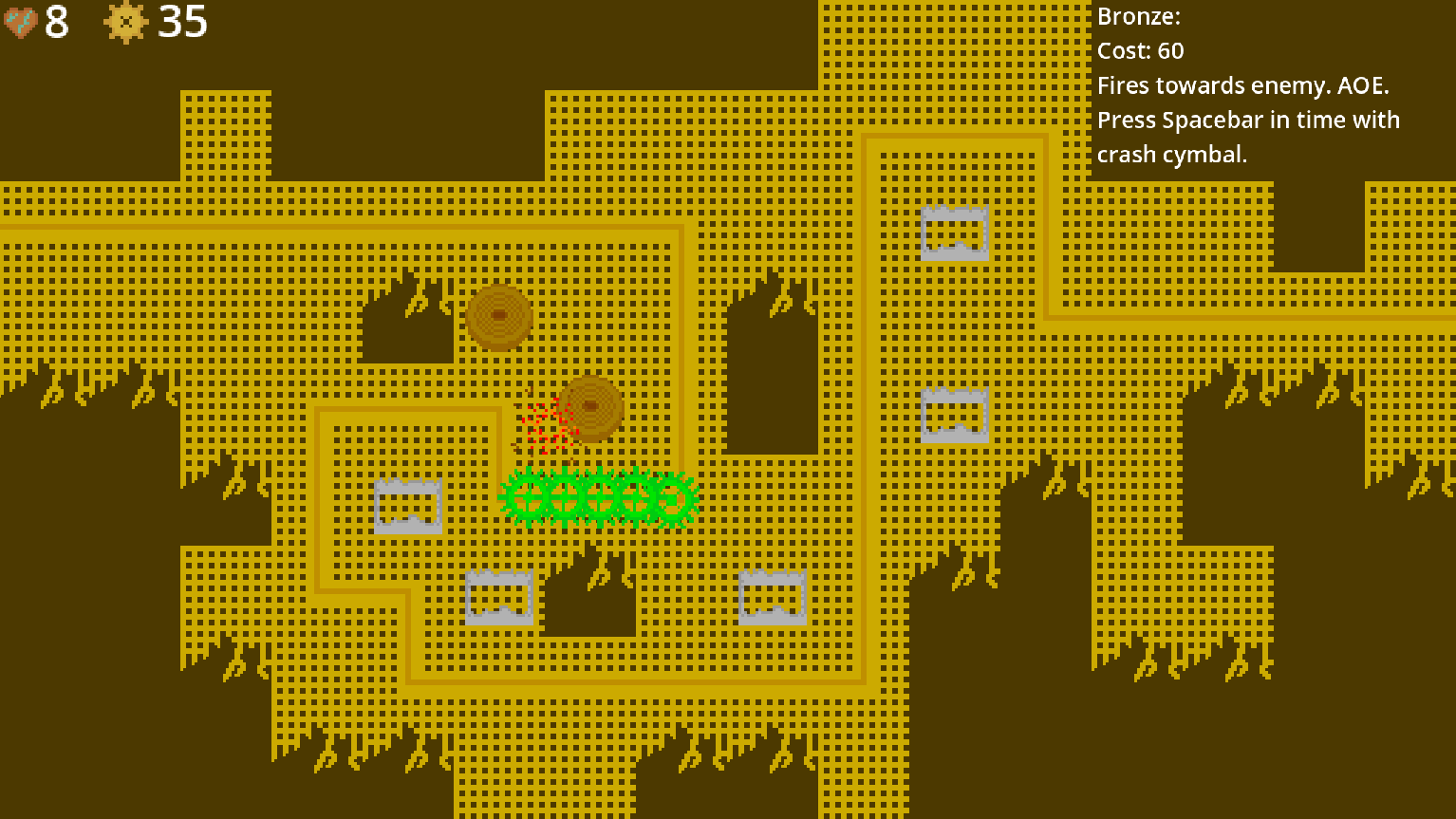 This is a short project for my game programming class. It is a few levels of a tower defense rhythm game hybrid. Players will be required to press buttons in time in order to make the towers fire and defeat enemies.
